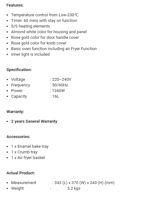 CORNELL 16L AIR FRYER OVEN CAF-E16L