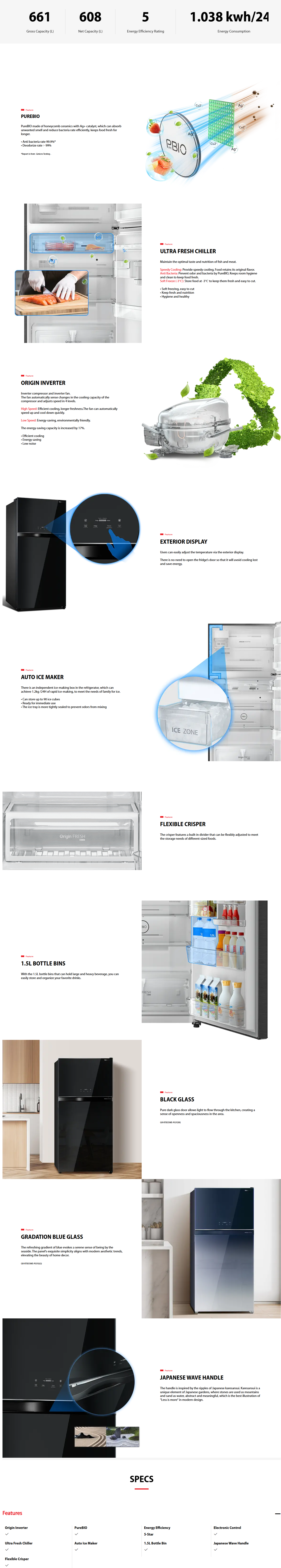 TOSHIBA 661L INVERTER FEIDGE W/ AUTO ICE MAKER GR-RT835WE-PGY(B5)