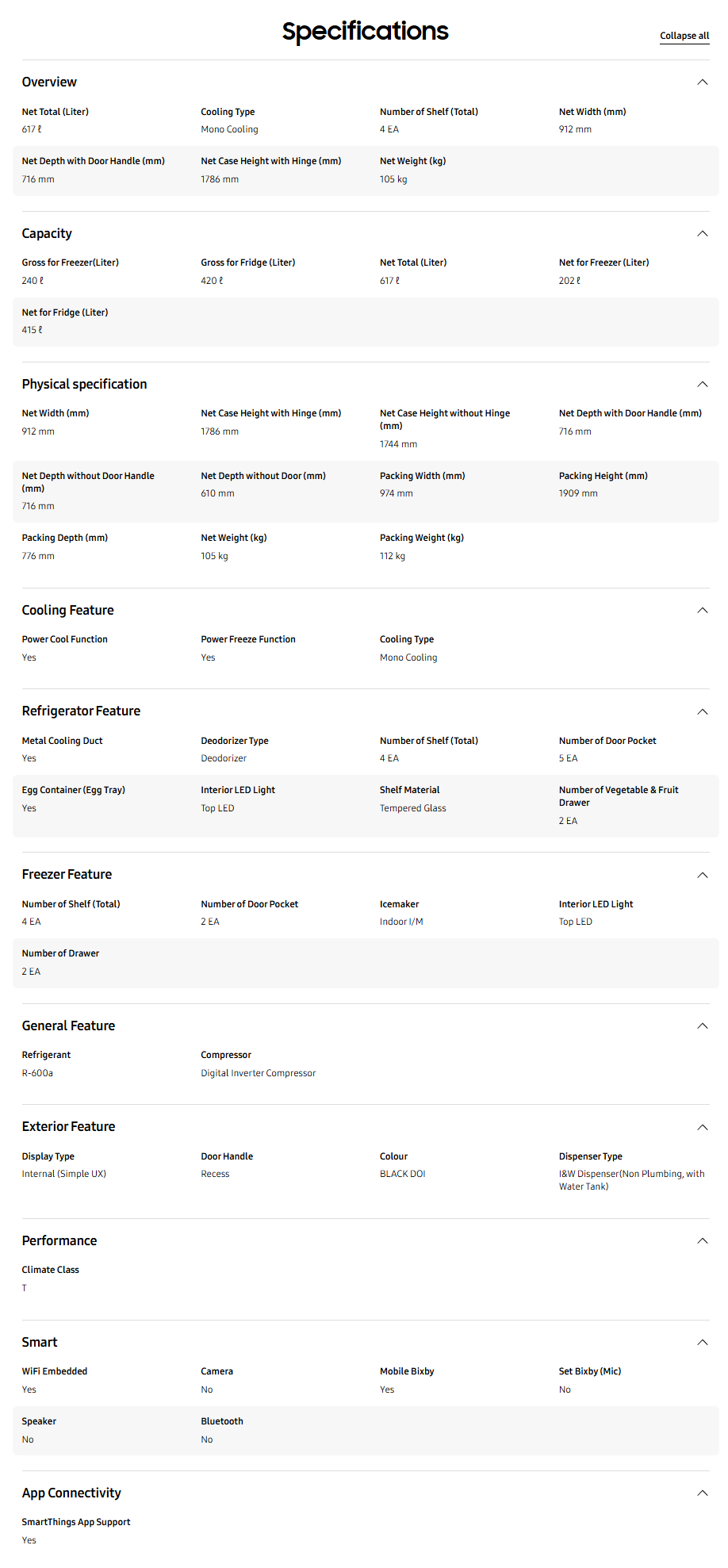 SAMSUNG 617L INVERTER SIDE BY SIDE FRIGE WITH AUTO ICE MAKER RS70F65KNFME