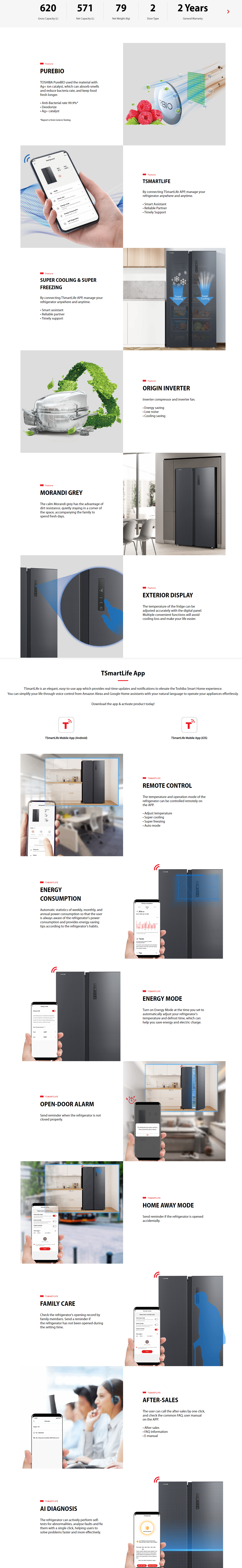 TOSHIBA 620L INVERTER IOT SIDE BY SIDE FRIDGE GR-RS696WI-PMY(06)