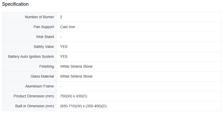 ELBA 5.2KW 2BURNER BUILT IN HOB EBH-S8542G(WH)