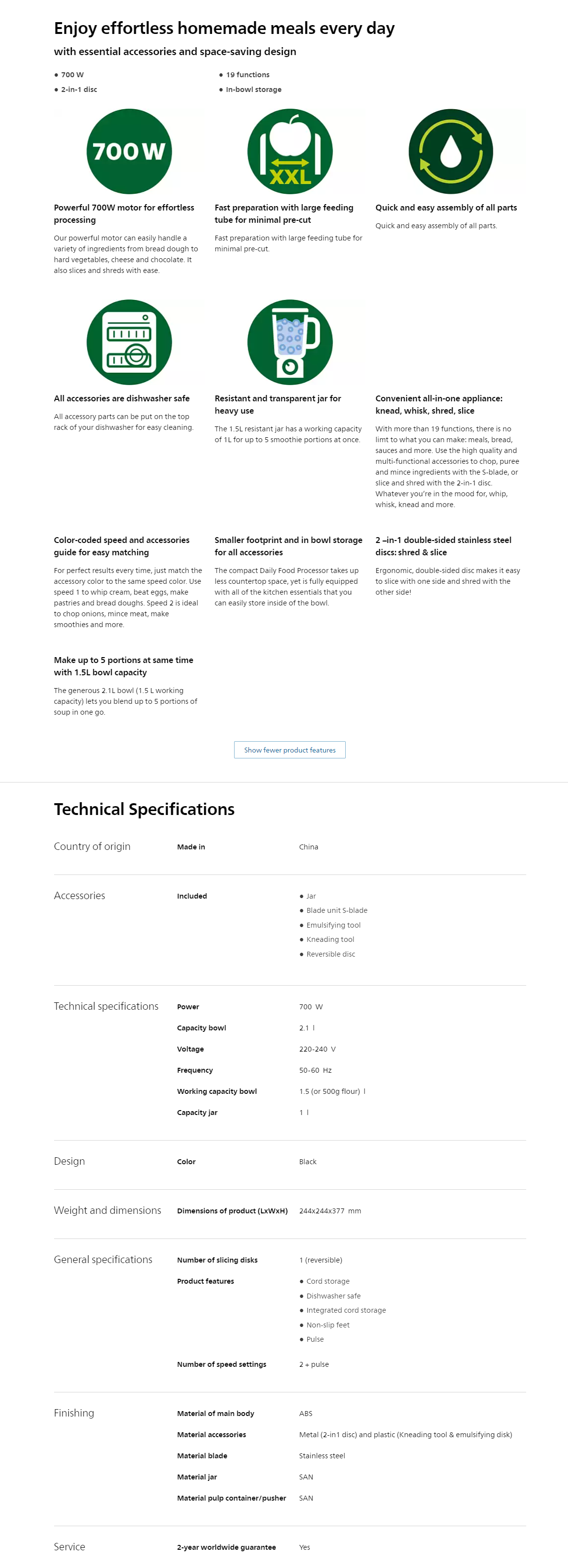 PHILIPS 700W FOOD PROCESSOR HR7320