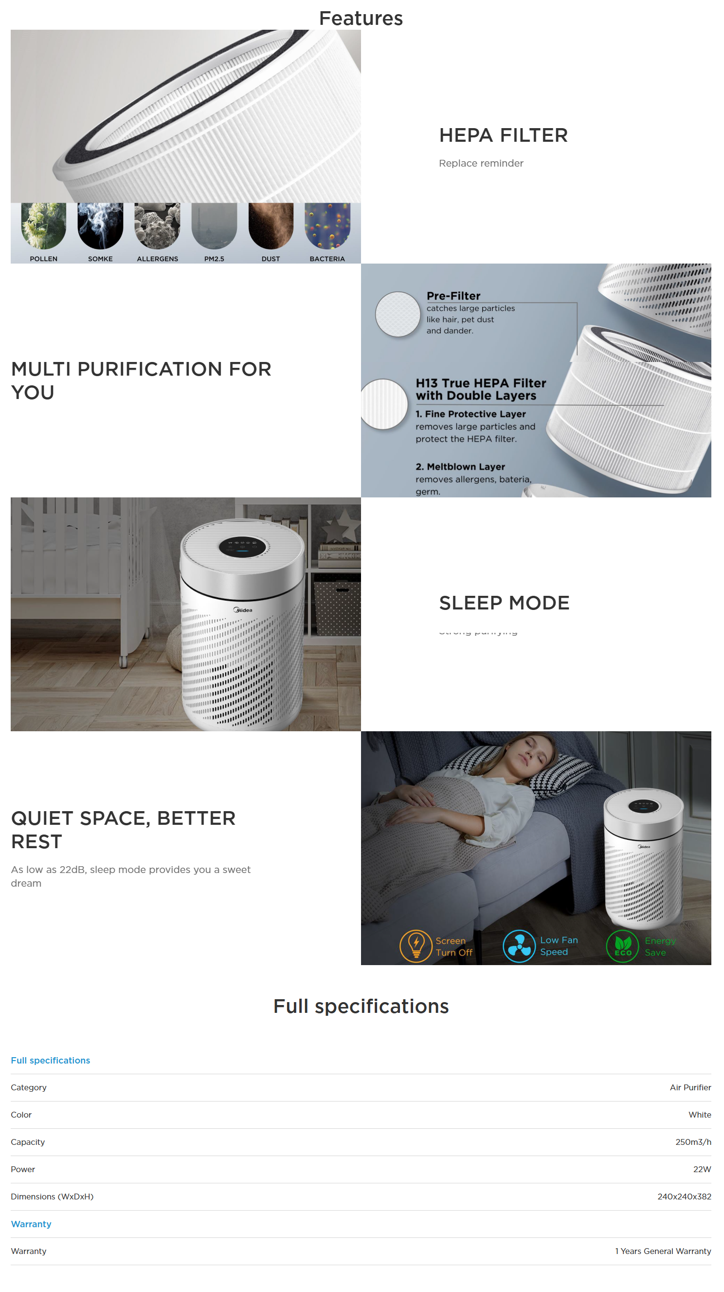 MIDEA 250M3 AIR PURIFIER MAP250G0BPW