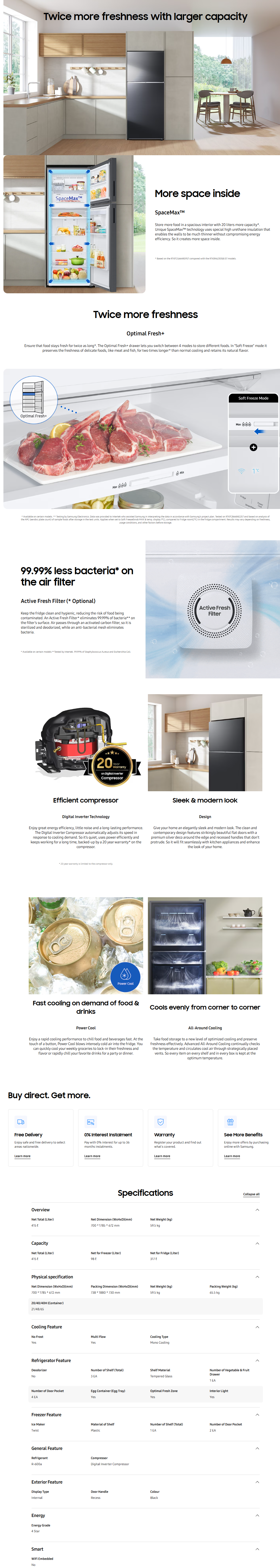 SAMSUNG 427L INVERTER FRIDGE RT42CG6444B1ME