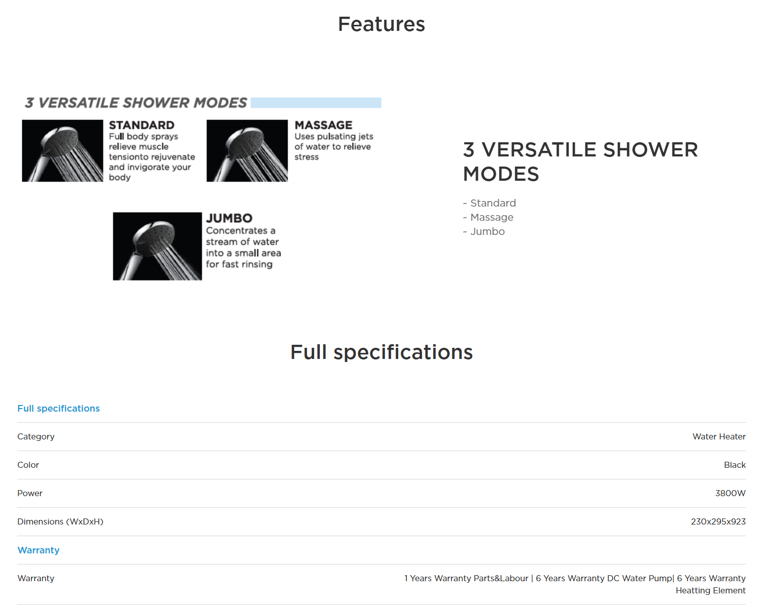 MIDEA 3.8KW NON PUMP WATER HEATER MWH-38MVNMY(C)-WB