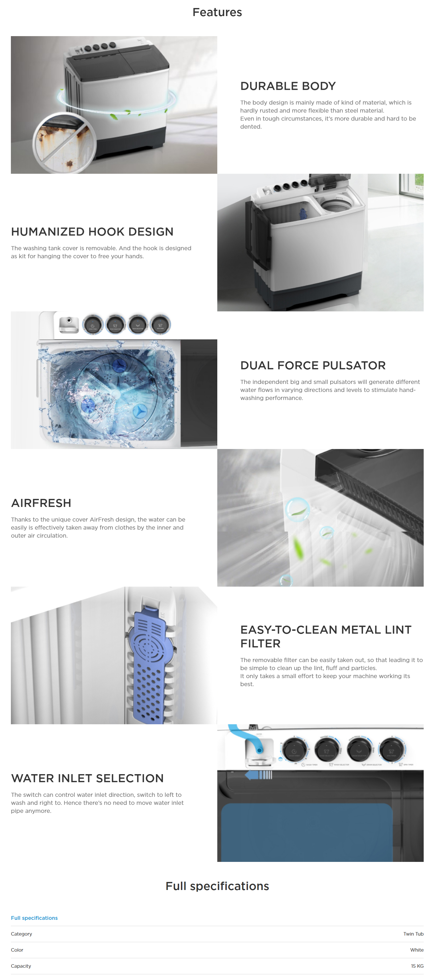 MIDEA 15KG SEMI AUTO WASHING MACHINE MT100W150