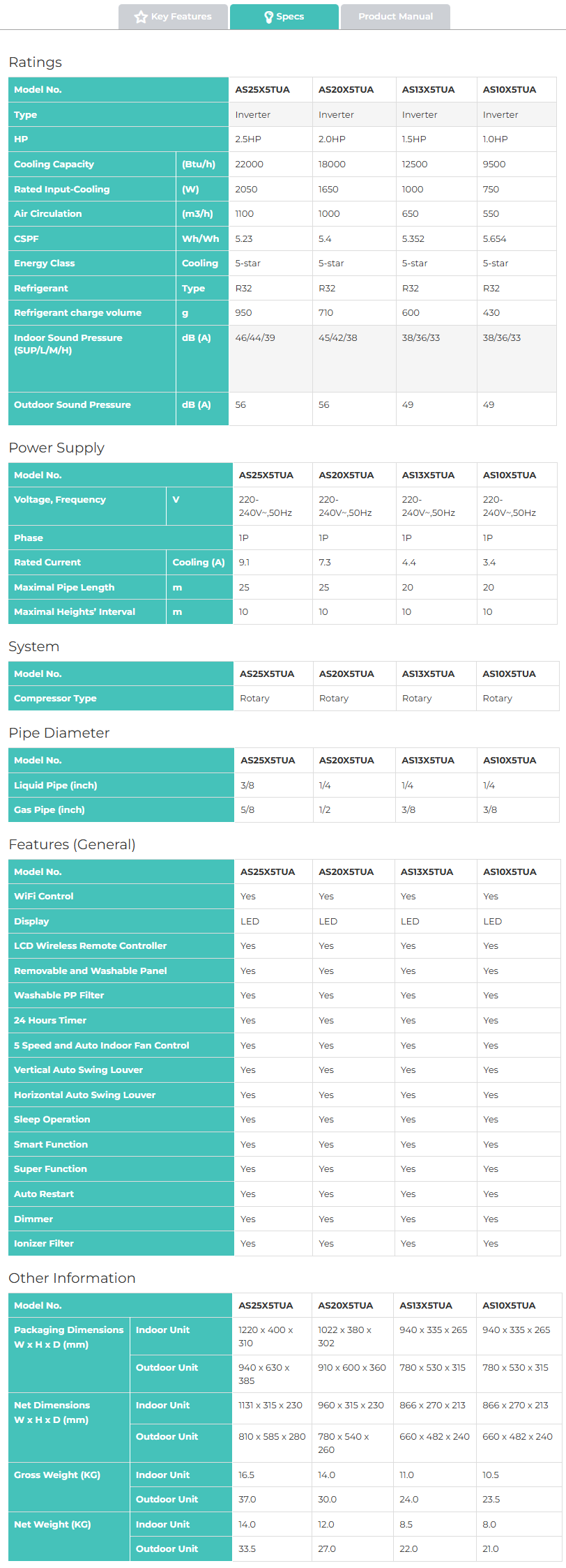 HISENSE 1HP R32 INVERTER AIR CONDITIONER AS10X5TUA