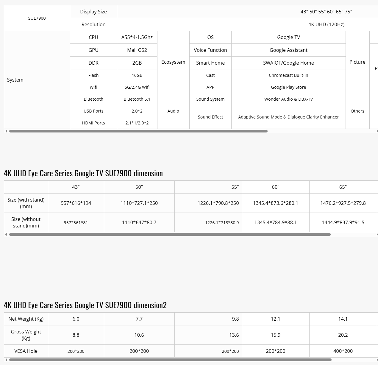 SKYWORTH 65" 4K UHD GOOGLE TV 65SUE7900
