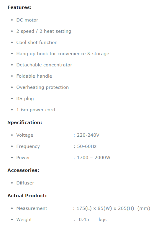 PENSONIC 2000W HAIR DRYER PHD-2004FD